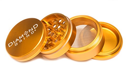 Diamond Grind 4 Piece Aluminum Herb Grinder with screen 50mm (2.00") GOLD