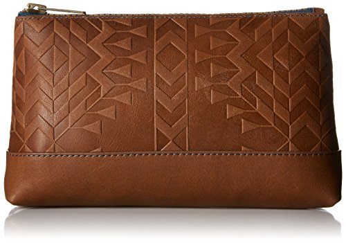 -. Feature : Oil tanned leather zip pouch / Debussed with exclusive Pendleton design / Contrast color stitching and lining / Zip top opening / 10 x 2 x 5.5