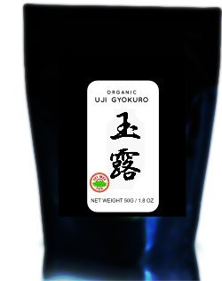 -. Feature : Highest quality gyokuro from Uji, Kyoto Prefecture, Japan / 100% pure organic / Shade grown green tea / Grown under cover for a longer period of time than other shade grown teas: Higher in Caffeine, L-Theanine, & Umami. / Gyokuro (g-yo-koo-lo) means "Jade-Dew" in Japanese--enjoy "serene elegance" that this rare tea brings to you: slightly nutty, then round and smooth with sweet afterflavor.