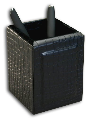 Dacasso Black Crocodile Embossed Leather Pencil Cup