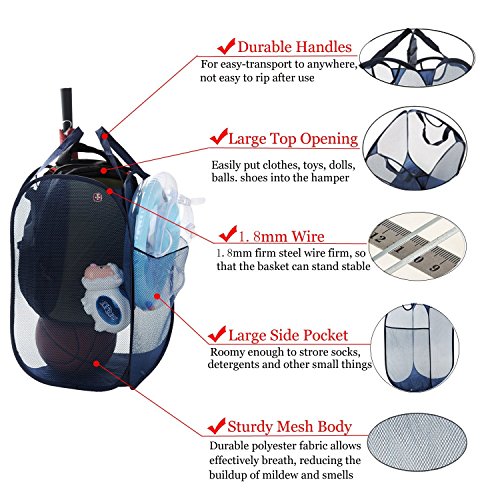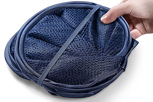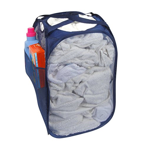 Does it strong enough to hold laundry well and easy for transport? Yes, it's made of 100% polyester, mesh and 1.8mm sturdy steel frame. Long, sturdy carrying handles make it easy to transport it from bedroom to laundry room-or laundromat when you have further to go.