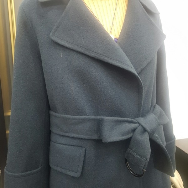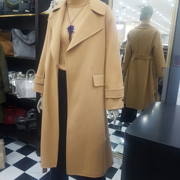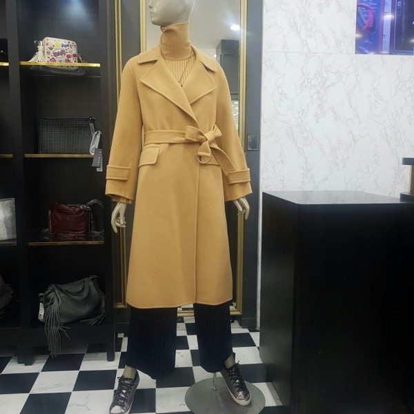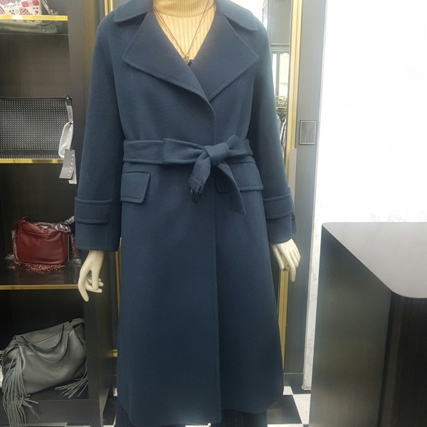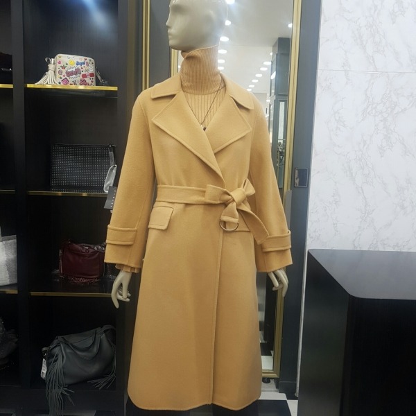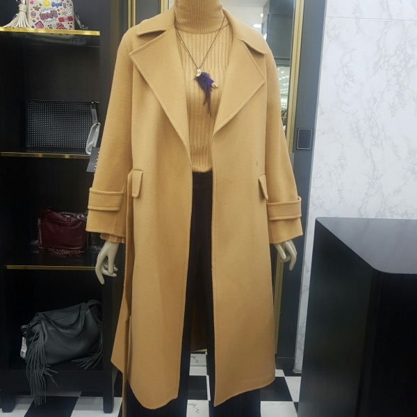 소매단추 포인트가 있는 벨티드 핸드메이드 롱코트입니다