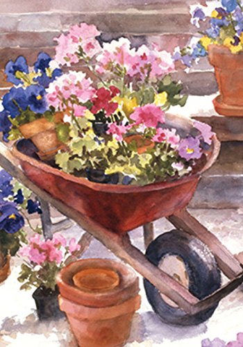 Toland Home Garden Red Wheelbarrow 28 x 40 Inch Decorative Spring Potted Flower House Flag
