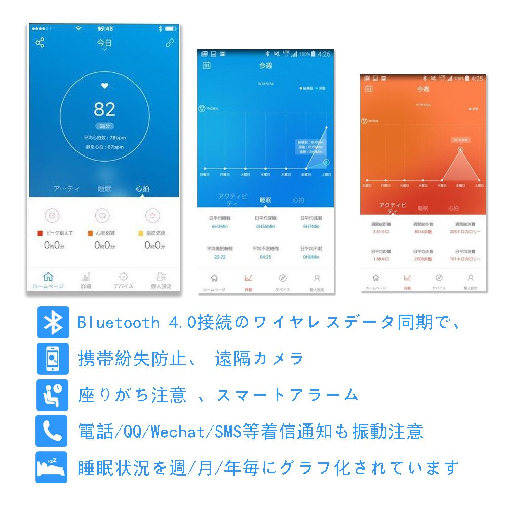 I downloaded the very fit heart rate application recommended by the manufacturer to the smartphone but the smartphone that did not synchronize with the bracelet at all was a thing of Android 4.0 or higher, but I could not help but download the previous version of Veryfit 2.0 Synchronized and synchronized now As a function currently using this as a pedometer sleeping even when sleeping, the figure goes up or appears clearly at multiple points clearly in the daytime etc. Heart rate which seems to be roughly seems to be almost Sleeping with a sleep meter Because I felt that the quality of sleep was not so good that there was a function of time and the ratio of deep sleep time and shallow sleeping time between them, I checked the measurement result and found that the deep sleeping time was 40% and the shallow sleeping time was 60 %, So when I tried two kinds of sleep support supplement trial course, both deep sleeping time became over 50% and awakening did not use supplement The more refreshed now The subscriber is subscribing to the more refreshed product The waterproof watch function is synchronized with the smartphone so it is accurate When the time comes with the function of the wake, how many hours will you tell by vibration to the wrist It also allows you to set not only the morning but also the break time, so you can also set the day of the week, so it is convenient
