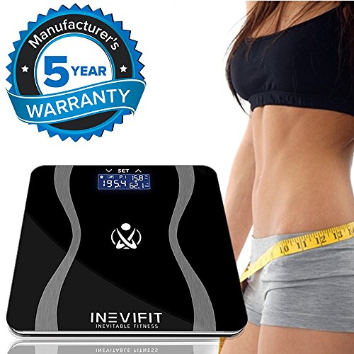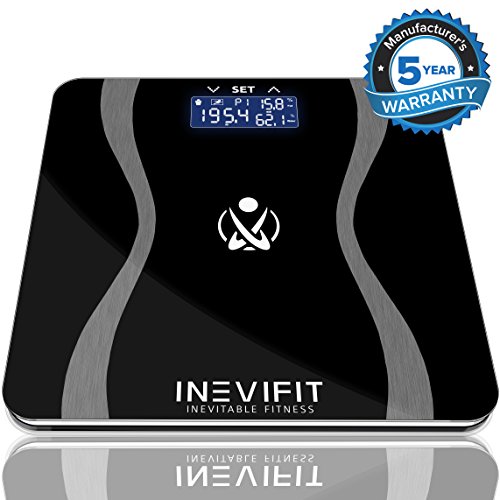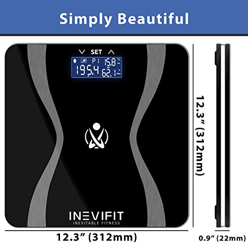 INEVIFIT BODY-ANALYZER SCALE, Highly Accurate Digital Bathroom Body Composition Analyzer, Measures Weight, Body Fat, Water, Muscle & Bone Mass for 10 Users. Includes a 5-Year Warranty
