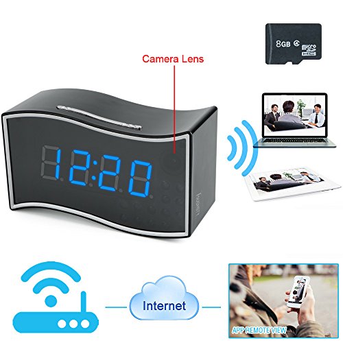 -. Feature : 【Spy Camera Clock】: this is a network camera. There is no distance limitation for you to view or record live videos after you complete the network configuration on your smartphone APP in the P2P mode. You can view or record live videos any where any time you want. Support LAN or WAN connection. You can enter "WIFI26" in our download center to download the latest online user menu. / 【Wifi Camera Clock】: real-time audio and video recording; 1920x1080P HD video resolution; real clock function; video format: AVI, FLV; support loop recording / 【Hidden Camera Motion Activated】: support motion detective recording, it will record only when motion is detected. 160° wide view angle. / 【Spy Camera Wireless】: support remote view and control through smartphone or tablet PC APP; support PC computer view and control / 【8GB Micro Sd Card DVR】: support 64GB Micro SD Card in max; 8GB Micro sd Card included; support recording and charging at the same time; 7/24 hours working with outlet power supply