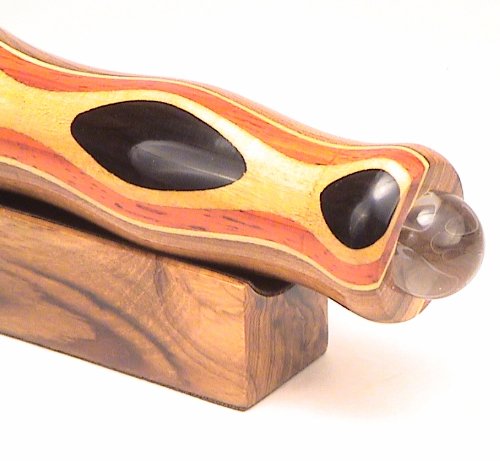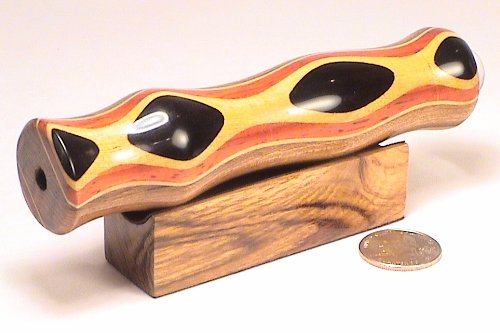 Product Description Beautiful solid Laminated woods including Teak Padauk and Ebony teleidoscope. Measures 5 inches long eyepiece to ball lens and is approx 1 1/8 inches in diameter. Comes with matching solid wood base and an attractive blue gift box. By N J 0
