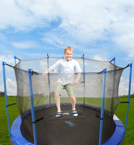 Studio : Upper Bounce Publisher : Upper Bounce Binding : Misc. Product Description With this "new" Upper Bounce innovative, unique, flexible, inexpensive and easy to use Trampoline Jumping Skate the only requirement is to have a trampoline. Just strap this board to your feet and start jumping! Practice different sports tricks or even invent new ones! Super lightweight with rounded edges protect your trampoline mat from damages. Slip Resistant fabric on the bottom and adjustable foot straps with heavy duty hook loop Velcro closure keep you well secured while you bounce. The foam is flexible, strong, and has great shock absorption. (Also great for snowboard and wakeboard practice). Get this Upper Bounce Trampoline Jumping Skate and you're in for the bouncing experience of your life! 0