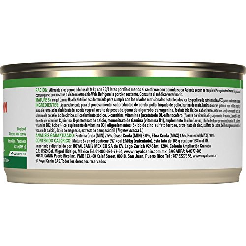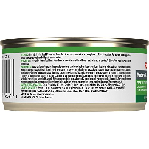 -. Binding : Misc. -. Brand : Royal Canin -. Feature : For dogs over 8 years old / For small dogs up to 22 lbs. / Can help stimulate the appetite of older dogs / Reduced phosphorus levels to help support kidney health / Made in the USA -. Label : Royal Canin -. Manufacturer : Royal Canin -. MPN : 42041 -. PackageQuantity : 1 -. PartNumber : 42041 -. ProductGroup : Pet Products -. ProductTypeName : PET_SUPPLIES -. Publisher : Royal Canin -. Studio : Royal Canin -. Title : Royal Canin Mature 8 Plus Canine Health Nutrition Canned Senior Dog Food