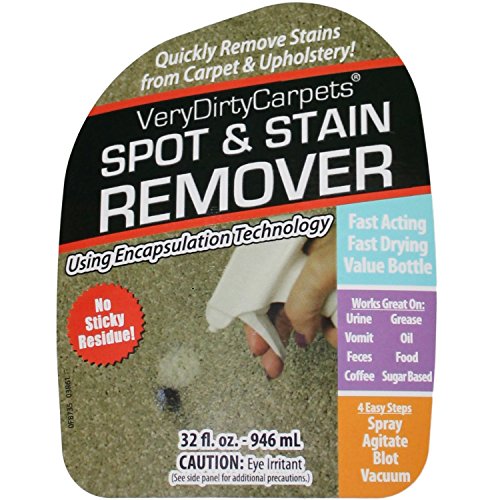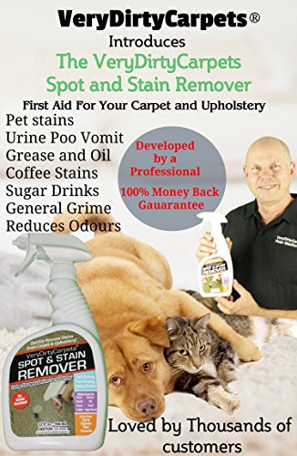 -. Feature : ✔HIGHLY CONCENTRATED CARPET STAIN REMOVER - UPHOLSTERY CLEANER- PET STAIN REMOVER This is not some cheap solution but a professional carpet cleaner for home use without bleaches or enzymes. see why people are raving about this fantastic carpet stain remover / ✔PET STAIN FIRST AID - CLEAN THEM LIKE THEY WERE NEVER THERE. ✔AMAZING ON A WIDE RANGE OF STAINS(SEE REVIEWS):coffee, grease, pet stains and odors, urine, sugary drinks, general grime, and more. (not color dye stains). it is also fantastic for car, auto Interior cleaner and very dirty carpets. / ✔FREE CARPET STAIN REMOVAL GUIDE to help you plan your way to remove the tricky stains. ✔CONCENTRATED NON STICKY SECRET FORMULA: GREAT VALUE FOR MONEY, No need to use a lot of product on the stain, designed for home use, and it dries quickly. / ✔AMAZING!!! CLEAN THE STAIN OFF ONCE: NO STICKY RESIDUE - NO REAPPEARING STAINS :Uses amazing encapsulation technology for your Carpet Cleaning Solution / ✔USE IT WITH CONFIDENCE : Peter MacDonald the Founder of VeryDirtyCarpets has 20 years experience in Carpet and Upholstery Cleaning and He has formulated this product based on the needs of his customers . He gives YOU a 100% MONEY BACK GUARANTEE. Made in the USA.