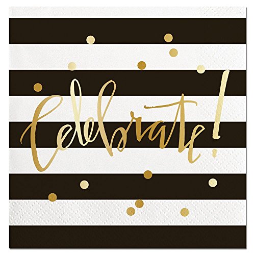 -. Brand : Slant Collections -. Color : black,gold,white -. EAN : 0657284481195 -. Feature : Black and white stripe paper beverage napkins decorated with gold foil / The word "Celebrate" is printed using gold foil / Opposite side is black and white stripe with no print / Measures 5" x 5" / Package of 20 paper napkins -. IsAutographed : 0 -. Label : Slant Collections -. Manufacturer : Slant Collections -. Model : F148810 -. MPN : F148810 -. PackageQuantity : 1 -. PartNumber : F148810 -. ProductGroup : Kitchen -. ProductTypeName : KITCHEN -. Publisher : Slant Collections -. Studio : Slant Collections -. Title : Slant Collections Black White Stripe Gold Foil "Celebrate" Paper Beverage Napkins 20ct -. UPC : 657284481195