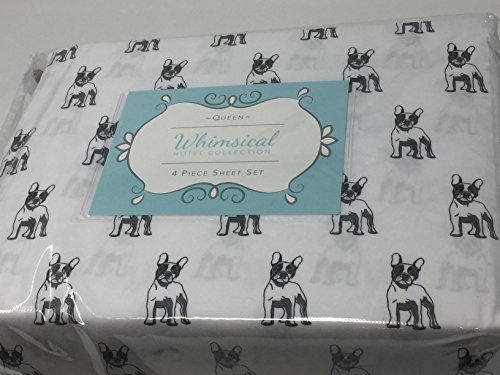 (Elite Home)/Bedding Bath/Bedding/DIRECT FROM USA/Elite Home Products MICSSQU100WPFBD 90 Gsm Microfiber Bulldog Print Sheet Set, Queen, White