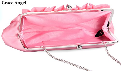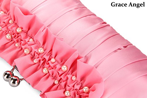 Grace Angel Women’s Pearl Chiffon Flower Decoration Satin Evening Bag GA6534