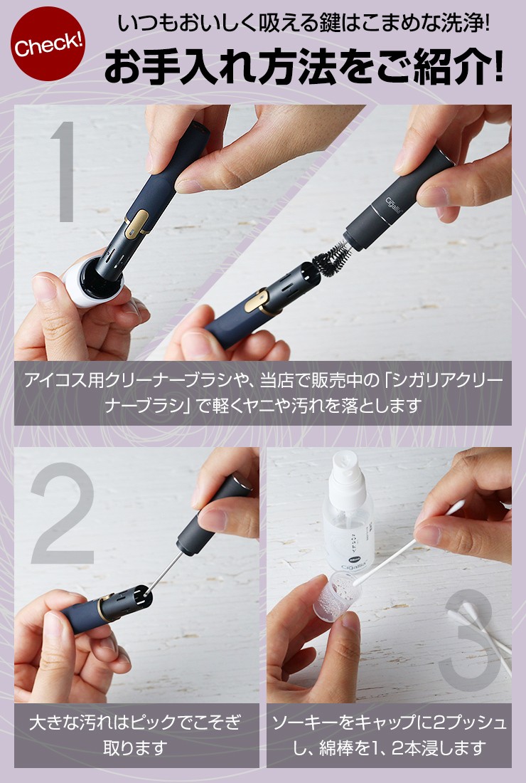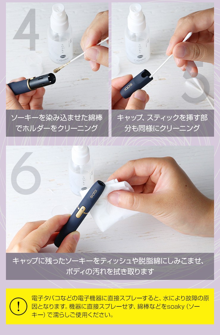 使用用途 加熱式たばこ、メガネレンズ、PCやスマートフォン液晶画面等の汚れ除去、除菌及び消臭