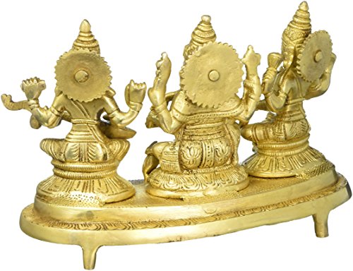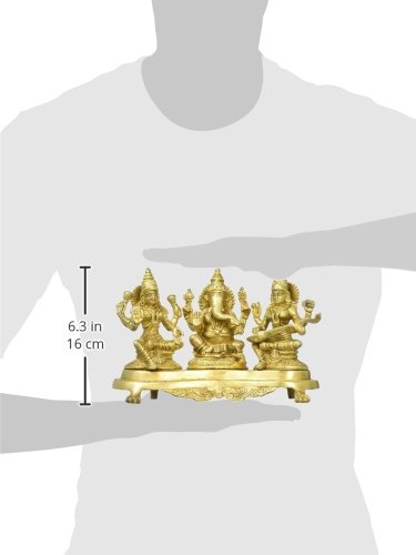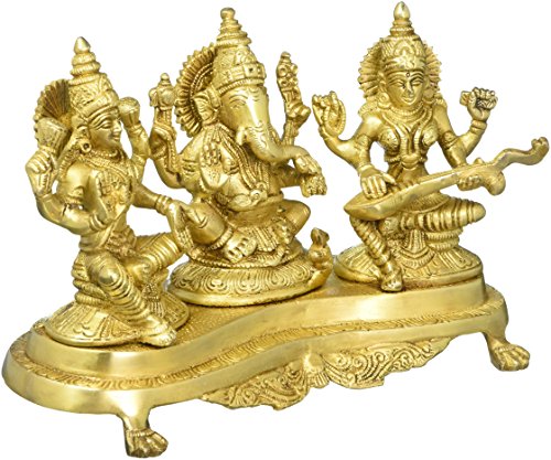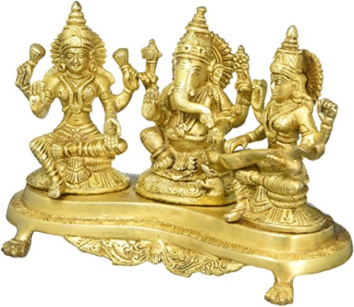 Aakrati Laxmi Ganesha Saraswati Sitting On A Stand Religious Temple Brass Statue Yellow
