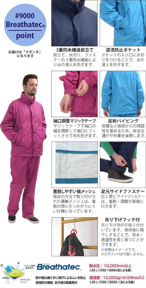 | 仕様 | 上下セット 男女兼用 ポケット付(上着両脇2箇所) 吊り下げフック付(上着のみ) 収納袋付 手洗い推奨 タンブラー乾燥不可 |