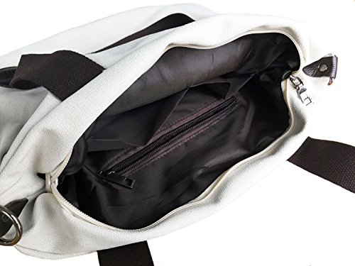 Quality durable canvas material.Cotton handle, cotton strap, Metal zipper. Smooth nylon fabric lining.