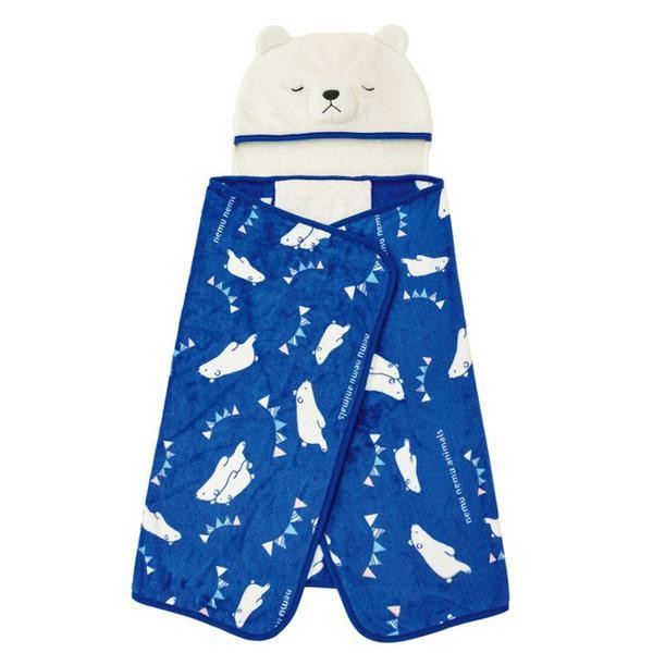 | 滑らかな肌触りのフランネル生地にねむねむたちをプリントデザインしたブランケット。シンプルにひざ掛けとして、お家でほっこりしたいときやアウトドアなど寒いときにはボタンを留めてボレロやポンチョや腰巻として、フード部分にブランケットを収納するとフェイスクッションにもなります。使う場所や気分などによって色々使えるので1枚あると便利です。薄いのに暖かく、お洗濯してもすぐ乾くのがうれしいポイントです。 |
