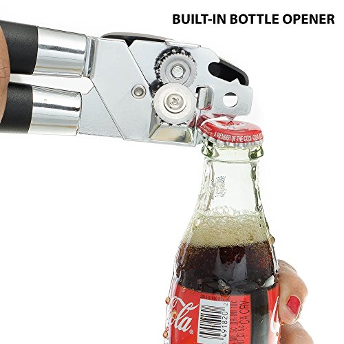 - Heavy duty stainless steel blades stay sharp. Safely and easily opens larger, sturdier cans with a smooth movement.