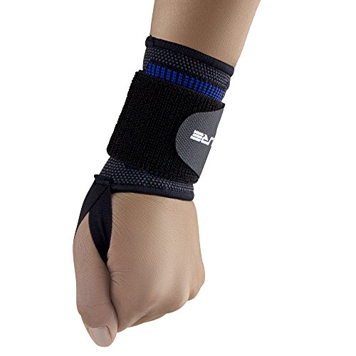 Wrist Support Compression Sleeves with Adjustable Straps for Perfect Fit - Relieve Carpel Tunnel, Wrist Pain – Use for Working Out, Yoga, Bowling (S, Black/Blue)