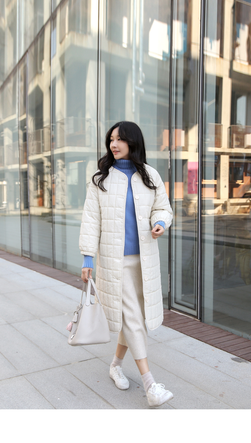 사각사각 퀼팅 롱 패딩사각 사각한 소재감과 네모 퀼팅의 롱 패딩 도톰한 이너와 함께 입어도 좋은 일자핏의 여유있는 롱 패딩이에요 라운드넥의 단정한 목선으로 후드티나 머플러 등과 함께 매치하기 좋답니다 군더더기 없이 깔끔한 디자인으로 허리선에 제감의 벨트로 묶어 연출해도 좋고 벨트없이 깔끔하게 입어도 좋아요 사각 사각 매트한 소재감과 가벼운 퀼티드 패딩으로 따뜻하고 산뜻한 아우터랍니다 Color아이보리, 민트 SizeFREE (44~66반) Fitting아이보리, 민트 ModelBN. 168cm . 55size Codyitem울터치 세미A라인 스커트, 세이 히든밴딩 텐션 양기모 일자팬츠, 소피아 울캐시 반목티, 바이 나그랑 폴라 니트, 소프트 캐시미어 머플러 Notice드라이클리닝,건조기 사용금지 |