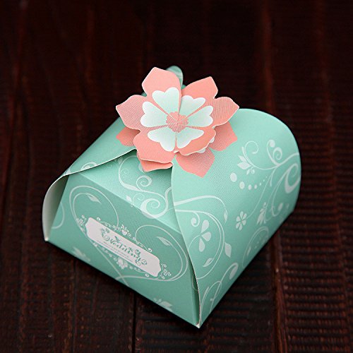 Pack of 50 pcs DIY Wedding Favor Candy Boxes Bridal Shower Favors Gifts Embossed Paper Boxes (3.153.151.97 inch, Green)