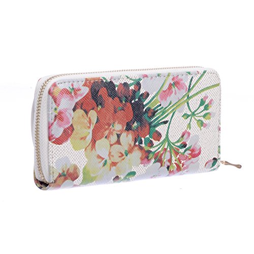 Product Description Secured with a 3 way zip closure this Nicci Zip Around Wallet is a classic design. You will love the multi functional pockets offering great organization and function in a nice slim size. The floral print design adds a great finishing touch to this cleverly designed walllet. The multitasking removable wristlet offers you a day to evening option. Available in a variety of colours. Click "Nicci" to view our entire collection of Trendy Fashionable Clutches, Wallets and Belts! 0