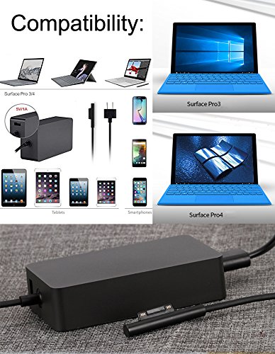 Replacement charger adapter for Microsoft Surface Pro 3 Tablet, Surface Pro 4 Intel Core i5 i7 Tablet,Surface Pro 5 2017 [ NOTE: Not Fit for Surface Pro 4 Intel Core M3].