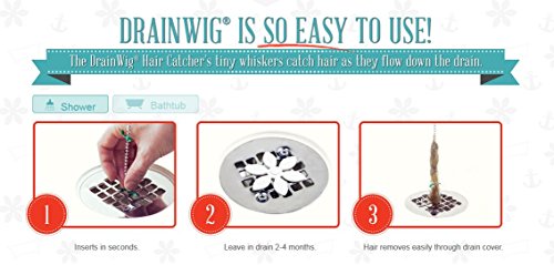 Drain Wig - Shower Drain (2 Pack), Never Clean a Clogged Drain Again, Hair Strainer, Hair Snare, As Seen on Shark Tank