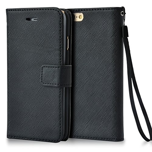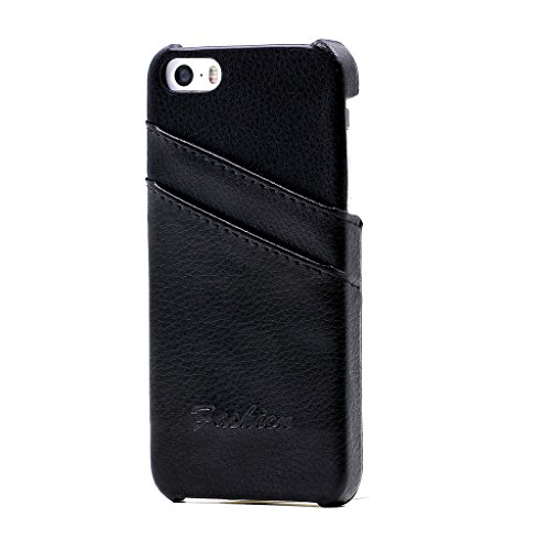 iPhone 5/5s Case,AIYZE Apple iPhone 5 5s Case Premium Genuine Leather Wallet Case with Card Holder Litchi black