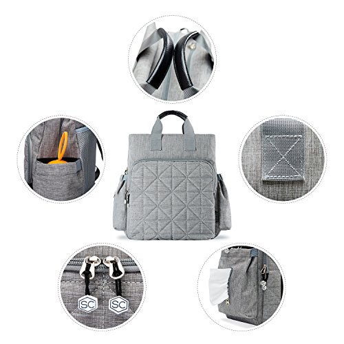 Our 100% satisfaction guarantee. SoHo offers a lifetime warranty on your purchase. If there is any issue, please contact us for service. Terms & conditions apply. This SoHo diaper backpack is a 6-piece ultimate set that a busy mom wants, inspired and designed by our famous French designer, Kenneth Leroy. This streamlined backpack offers detailed construction and true hands-free convenience and functionality. Perfect for both on-the-go mom and dad. Our extra roomy main compartment has multiple pockets, reliable zip-top closure, and adjustable padded straps. This bag has a total of 11 pockets, interior and exterior, for your organizing needs. This bag can hold most 14" laptops. This backpack can also hang neatly on a baby's stroller, using the included pair of stroller straps. It also includes a personal purse with zippered closure for on-the-go moms to carry all of their personal items. In addition, it comes with our nice cushioned changing pad, and our compact diaper bag dispenser with 30-count of refillable plastic bags, which conveniently clips to the main diaper bag for busy moms.Feature