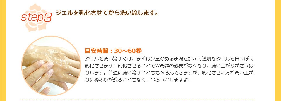 *ウォータープルーフのポイントメイクは専用のリムーバーで落としてからクレンジングゲルをお使いください。