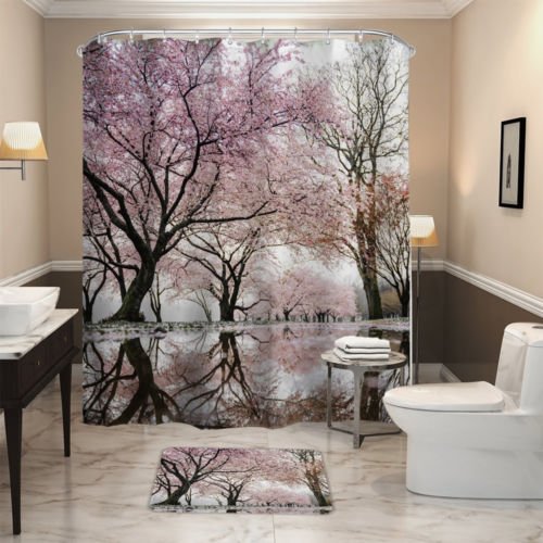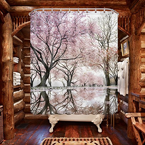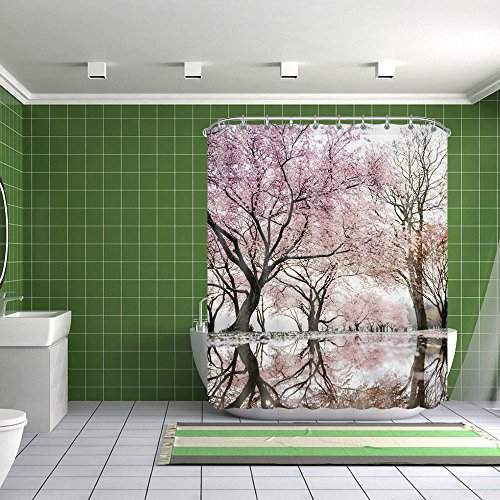 ALL PRIDE Japanese Cherry Blosso Shower Curtain Peva Fresh Style Waterproof Odorless Eco Friendly Anti Bacterial Polyester Fabric No Chemical Odor Shower Curtain 60"x72"