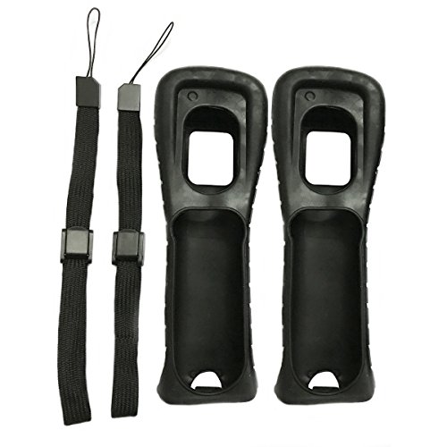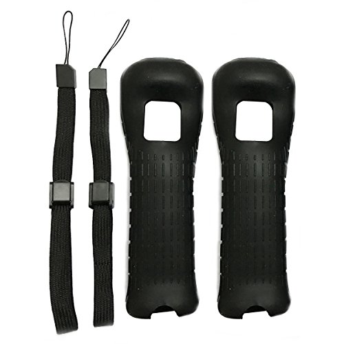 2X Black Silicone Skin Case Cover With Wrist Strap For Nintendo Wii Remote Controller