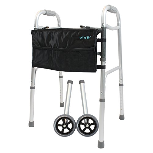ACCESSORIES INCLUDED: Conveniently carry and store essential items throughout the day in the Vive walker bag that easily attaches to the walker. Also included are upgraded five-inch rubber sport wheels for navigating uneven surfaces with ease.