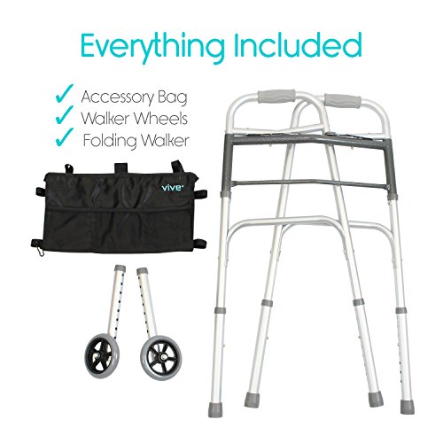 Folding Walker by Vive [Plus Bag and Wheels] - Narrow 23 Inch Wide Elderly...