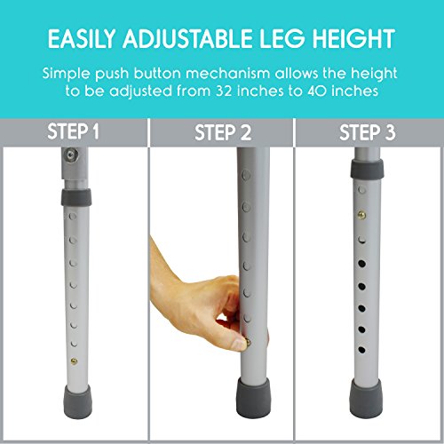 LIGHTWEIGHT AND ADJUSTABLE: Anodized, extruded aluminum frame is durable and lightweight, supporting up to 250 pounds. Easily adjustable, the walker height adjusts in one-inch increments between 33” to 40” to provide a perfect fit for any individual.