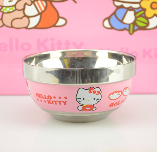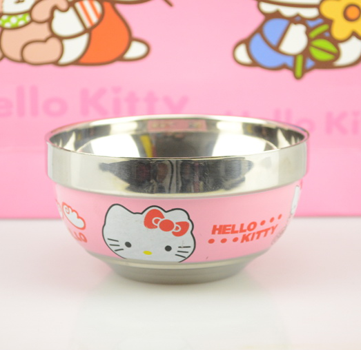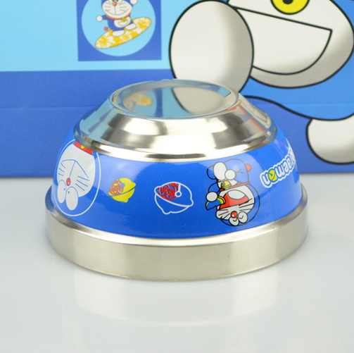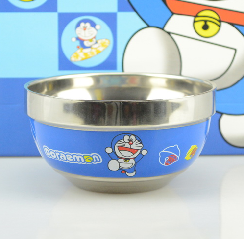 可爱kitty学生饭碗哆啦a梦卡通不锈钢隔热创意饭碗汤碗儿童餐具
