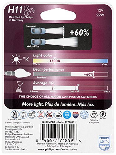 Philips VisionPlus upgrade headlight bulbs produce a light beam that is up to 80 foot longer than the beam produced by standard halogen headlight bulbs, which allows drivers to see farther for greater safety and comfort. Philips VisionPlus is the performance choice for safety-conscious drivers. Offering high-performance and excellent value, VisionPlus is the right choice for today's demanding drivers.