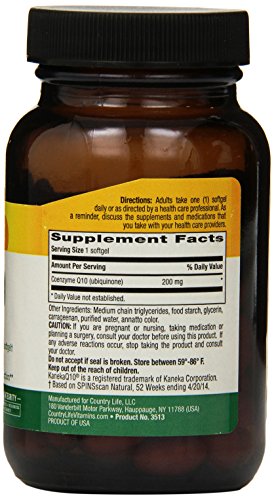 Product DescriptionCountry Life CoQ10 200 mg 30 Vegan Softgels supports energy production and a healthy heart.0