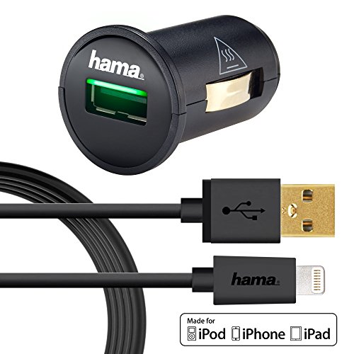 Hama 12Watt/2.4 Amp Car Charger + Military Grade Lightning Charge/Sync Cable