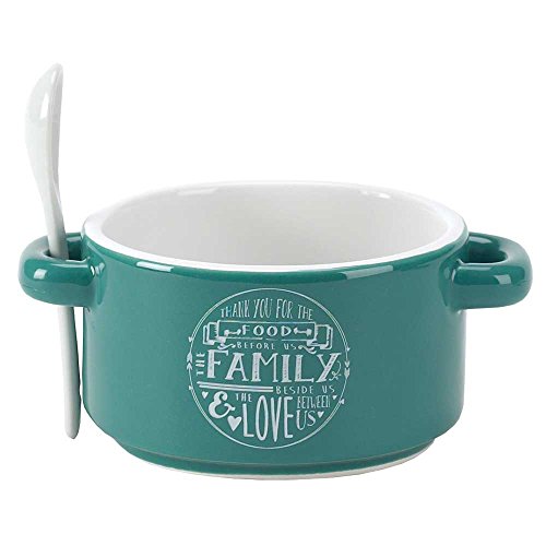 Thank You Food Family Love 14 Oz. Aqua Ceramic Dolomite Soup Bowl with Spoon