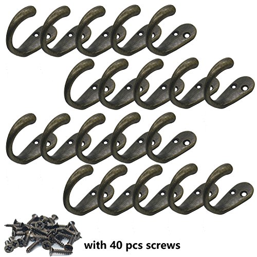 20pcs Vintage Retro Bronze Hooks Door Wall Closet Mounted Single Hook Hangers with 40pcs Screws (20PCS Style2)