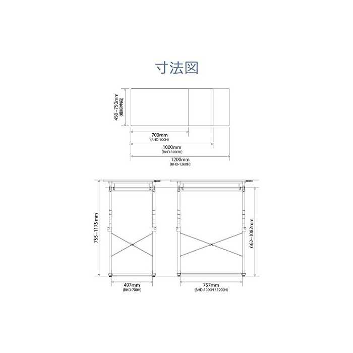 본체 사이즈:폭100×(길이)깊이45×높이75.5cm, (책상이나 카운터의) 널찍하고 평평한 윗부분의 높이:약75.5~117.5cm