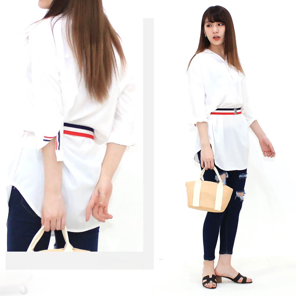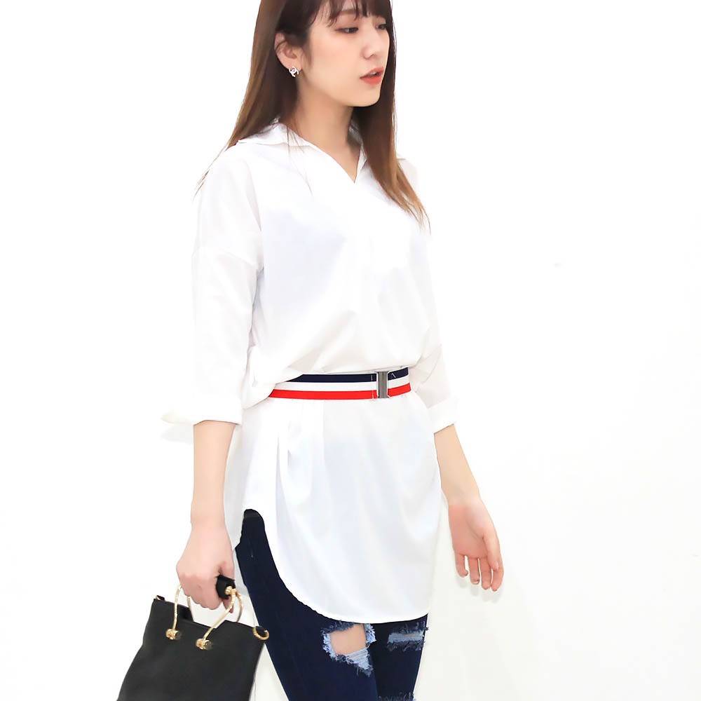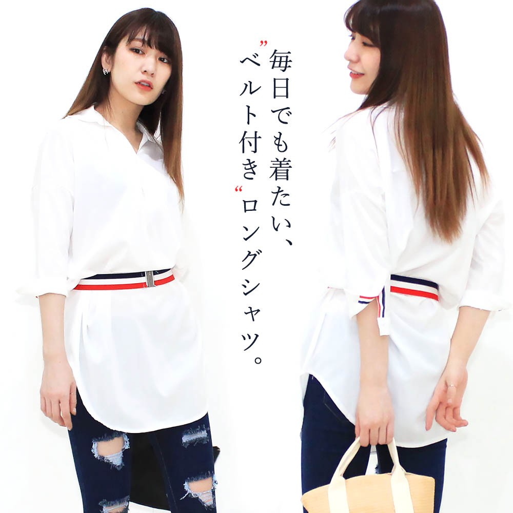 軽めのアウターとして使えるベルト付きロング丈シャツワンピース