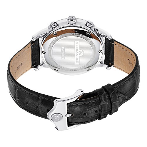 -. Title : Alexander Statesman Chieftain Wrist Watch For Men - Black Leather Analog Swiss Watch - Black Dial Day Date Month Mens Chronograph Watch - Stainless Steel Mens Designer Watch A101-02