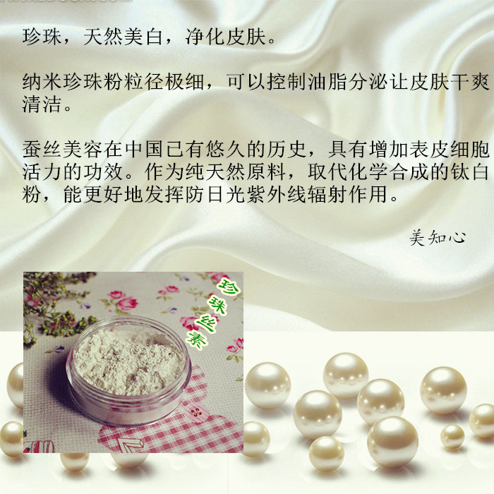珍珠丝素粉:色泽上最白,是纯白色,比较适合肤色白和也喜欢白的mm用;质地细腻,很好抹均匀,不会因为太白而觉得不自然,适合任何肤质,任何年龄的人群,因为这一款没有添加花粉,所以对花粉过敏的MM适合用这款哦!