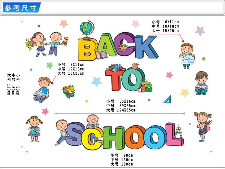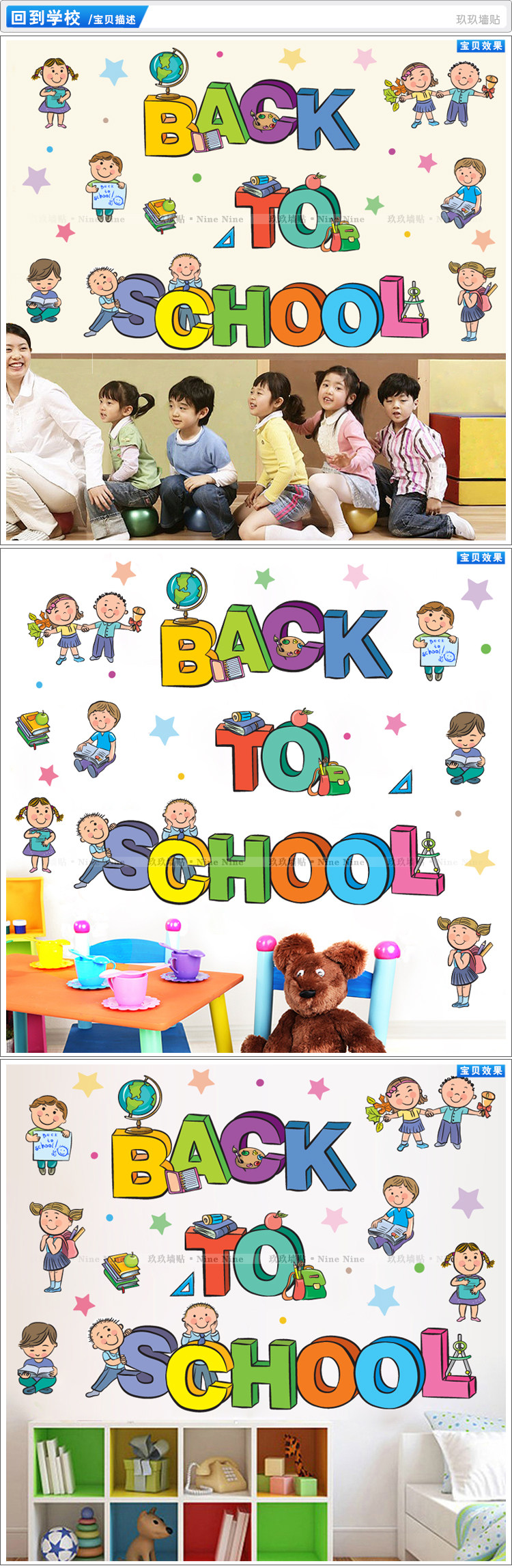 墙贴学校幼儿园小学校儿童启蒙英语培训班卡通人物小朋友贴纸贴画
