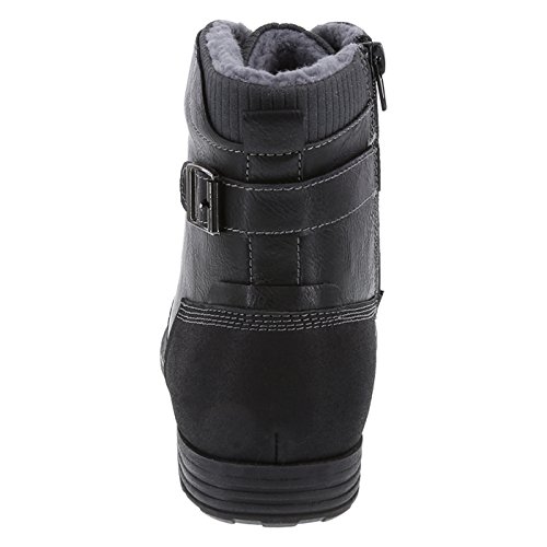 Binding : Apparel Product Description You can still be warm and have your fashion-sense, too! This Dexter boot features a stylish burnished upper with an on trend cap toe and a lace-up design. Additional features include a side zipper for easy on/easy off, a warm faux shearling lining, padded footbed, and a rubber outsole. Manmade materials. 0