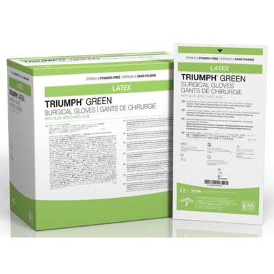 Medline MSG2580 Triumph Green with Aloe Sterile Powder-Free Latex Surgical Glove, Size 8, Green (Pack of 200)